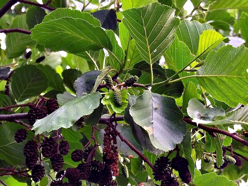 Саженцы Ольхи черной Рубринервия (Rubrinervia) – дерево среднего размера. Высота не превышает пятнадцати метров. Крона в форме пирамиды достигает восьми метров. Ствол и крупные ветки покрыты коричневой корой с бороздами. Листочки насыщенного зелёного цвета украшены красными прожилками, и такого же цвета черешками. Дерево отличается быстрым ростом. В марте и апреле на ветвях образуются цветы-серёжки. Ольха не требовательна к почве, но самые лучшие условия для неё – в меры влажная, рыхлая и не очень кислая земля. Дерево любит солнце и плохо реагирует на засуху. Ольха не боится мороза и хорошо смотрится в группах.