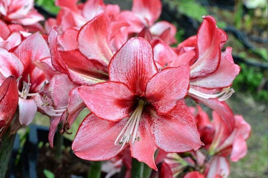 Амариллис Простой Харизма - это великолепное растение, которое поражает своей красотой и изяществом. Его стебель достигает высоты до 70 см, а цветок имеет диаметр до 12 см, что делает его по-настоящему величественным. Листья амариллиса имеют уникальную форму, а цветки окрашены в жемчужно-белый цвет с коралловым крапом, создавая неповторимый вид.