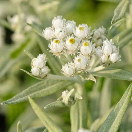 Саженцы анафалиса трехжилкового Соммершне (Sommerschnee) порадуют высокой декоративностью и неприхотливостью в уходе. Высота взрослого растения варьируется от 25 до 40 сантиметров. Куст состоит из прямостоячих стебельков, густо покрытых опушенными листьями. В конце лета на верхушках распускаются мелкие жемчужно-белые цветы. Анафалис трехжилковый Sommerschnee идеально подходит для оформления каменистых горок или альпинариев, наполнения миксбордеров. Растение прекрасно сочетается с итальянской астрой, котовником, колокольчиком и другими засухоустойчивыми цветами.