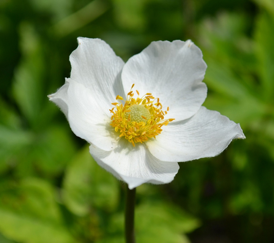Саженцы анемоны лесной (Anemone sylvestris) обладают простой неброской красотой, цветы часто используются для создания нежных букетов невесты. Побеги растения достигают в длину около 20 сантиметров. В их нижней части сосредоточены резные зеленые листья. В конце мая растение выпускает цветоносы с одним крупным пятилепестковым цветком (до 7 сантиметров в диаметре) белого цвета с желтой серединкой. Цветет анемона около 3 недель. Предпочитает затененные места, хорошо развивается под деревьями и кустарниками. Предпочитает легкие, плодородные, достаточно увлажненные почвы. Анемона самостоятельно размножается самосевом.