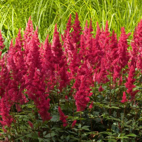 Рассада Астильба японская Везувий (Vesuvius) в пик своего цветения достигает в размере не более 60 сантиметров. Только распустившиеся из семян молодые листья имеют бордовый цвет, который в процессе созревания цветка преобразуется в темно-зеленый, а черешки становятся красными. Не крупное соцветие по форме напоминающее метелку и в высоту достигает 15 сантиметров. Цветовая палитра расположилась от лососево-красных до карминно-красных оттенков. Растение проявляет повышенную устойчивость различным вредителям. Период цветения длится с июля по август, в среднем до 30 дней. К отличительным особенностям Астильбы японской Везувий можно отнести: - оптимально для посадки в средней полосе России; - при посадке почву необходимо подкормить минеральными удобрениями; - отлично смотрится во всех видах садовых посадок; - подходит для затененных участков.