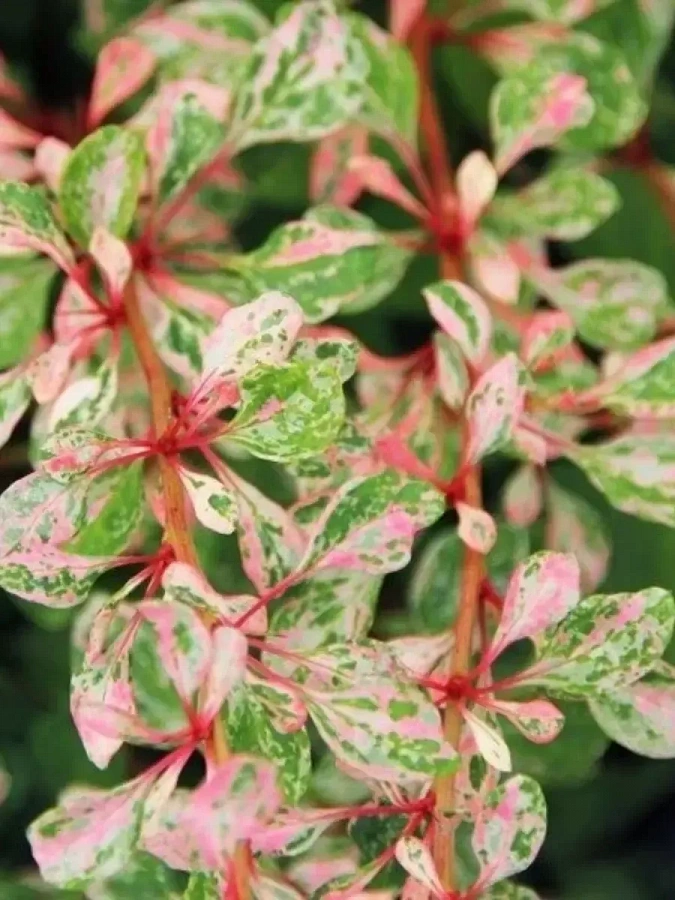Саженцы кустарника барбариса Наташа (Natasza) – считаются лучшим сортом барбариса с пестрой окраской. Главная отличительная черта – листья бело-розово-зеленого оттенка и плоды насыщенного розово-красного цвета. По сравнению с другими сортами окрас растения сохраняется до конца момента вегетации. Кустарник хорошо будет расти на любой почве, особых требований нет, хорошо переносит палящее солнце, заморозки и характерные заболевания. Сорт Наташа часто используется для формирования ярких ландшафтных композиций или для групповых посадок. Саженцы дополняют городские парки или участки вблизи усадеб. Единственное, что может губительно сказаться на состоянии растения – это застой влаги в грунте. Сажать кустарник нужно на освещенном участке.