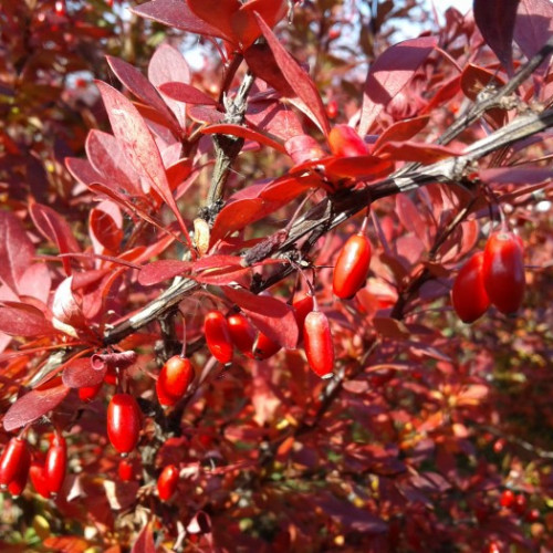 - плоды – после цветения остаются кораллово-красные продолговатые ягоды. Саженцы барбариса Золотое Кольцо хорошо переносят зимние морозу и не требуют дополнительного ухода.
