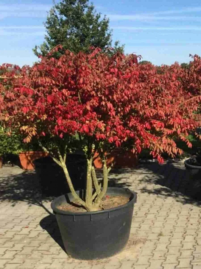 Саженцы бересклета европейского Красный Каскад (Red Cascade) – лучший вариант для украшения живых изгородей и групповых посадок в осенне-зимний период благодаря пурпурным листьям и темно-красным плодам. В высоту бересклет вырастает до четырех метров.