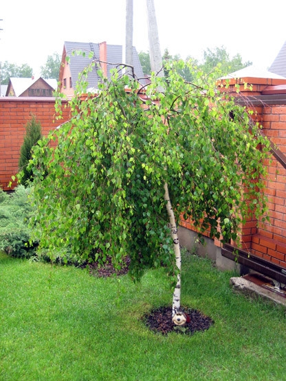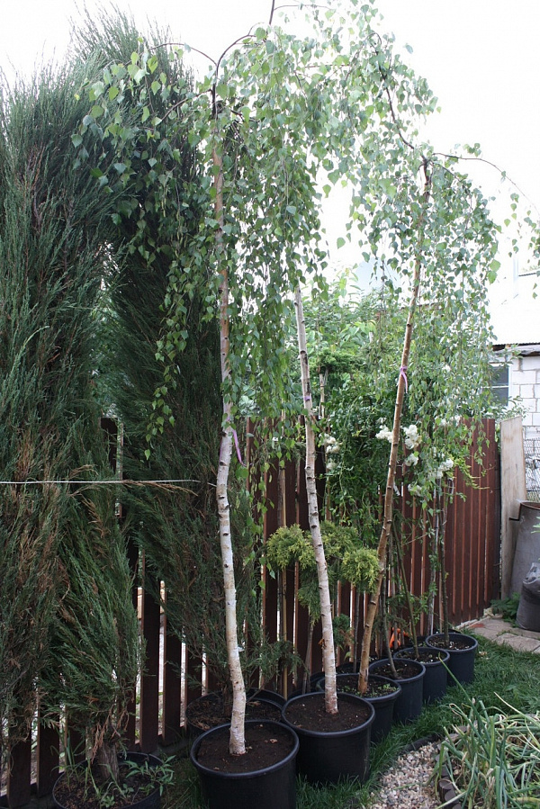 Саженцы Берёзы повислой Янги на штамбе (Betula pendula) – лиственное дерево. Его высота зависит от высоты штамба. В среднем – 250 сантиметров. Крона зонтикообразная, сформирована из тонких ветвей плакучей формы, диаметром около 150 сантиметров. Ежегодный прирост не более 8 сантиметров.