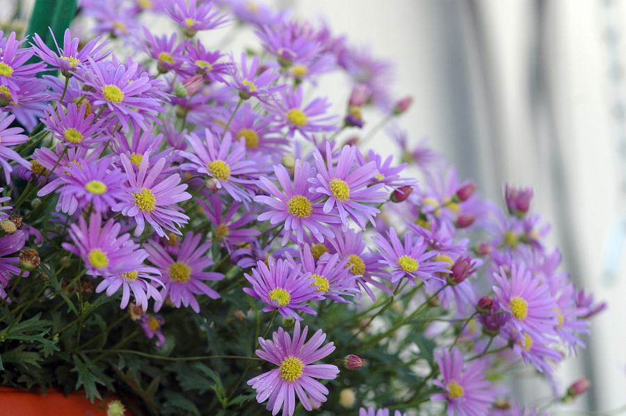 Саженцы Брахикомы обыкновенной Браско Виолет (Brasco Violet) наполнят цветник трогательной простотой и изяществом. Травянистые пышные кустики с ажурной листвой, высотой 30 или 50 сантиметров, уже в июне покрываются многочисленными бутонами. Цветки – простые ромашки, голубого или сиреневого оттенка с желтой серединкой, обильно покрывают кустик на протяжении 2 месяцев.
