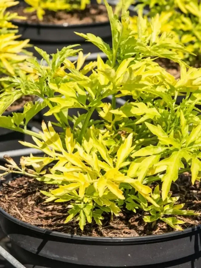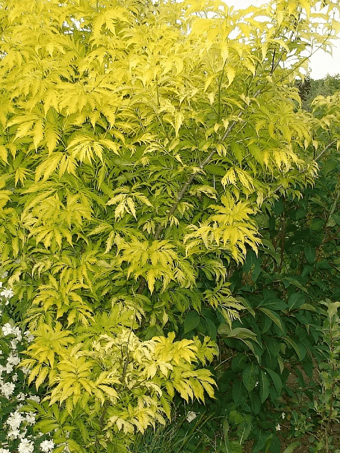 Бузина черная голден тауэ - это великолепное растение с лимонно-желтой листвой, которая радует глаз весной, летом и осенью. Ее бело-молочные цветки создают неповторимую атмосферу в мае и июне. Этот кустарник имеет ствол высотой до 4 метров и диаметром до 1 метра, что делает его идеальным для групповых посадок на газоне или в одиночных посадках.