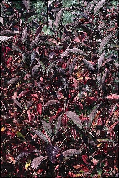 Саженцы Дёрена белого Кессельринги (Kesselringianum, Cornus alba) – это лиственный быстрорастущий кустарник, высотой и диаметром до 300 сантиметров. Крона кустарника развесистая и крепкая, образована отростками, устремленными вверх. Сами побеги темно-красные и прутьевидные, эффектно выглядят поздней осенью и ранней весной. Дёрен белого Кессельринги с овальными зелеными листьями, которые с нижней стороны сизовато-белые с прожилками, чуть сморщенные. Осенью они фиолетово-красные или коричневые. В период цветения можно видеть бело-кремовые цветки с приятным запахом. Белые плоды осенью становятся голубоватыми. Растение неприхотливо, выносит тень, морозоустойчиво.