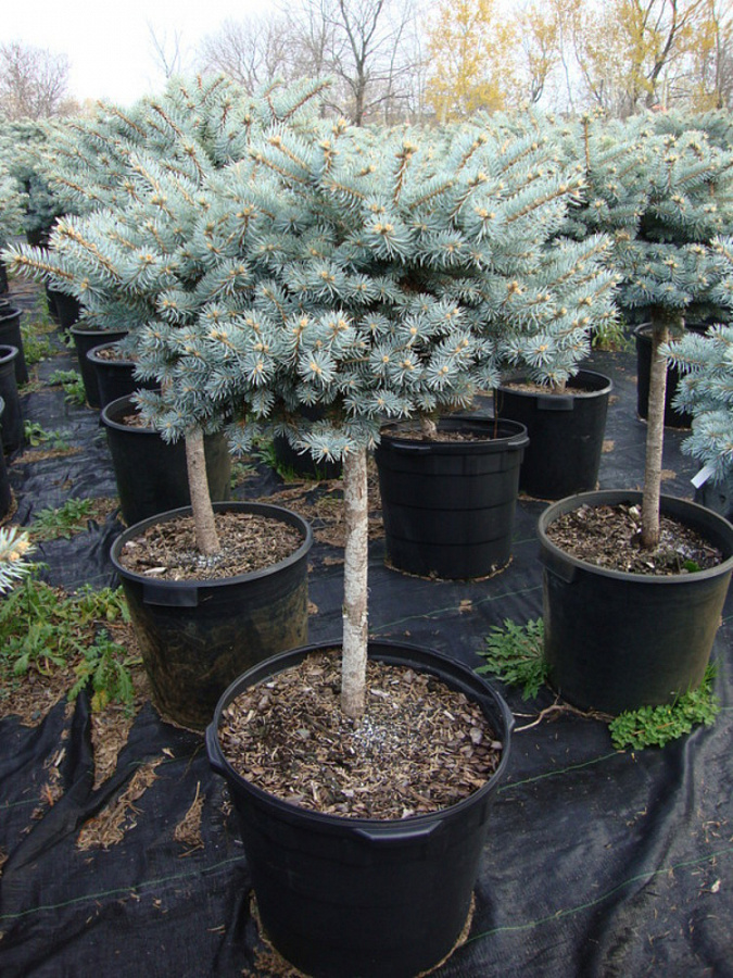 Ель колючая Глаука Глобоза - штамб