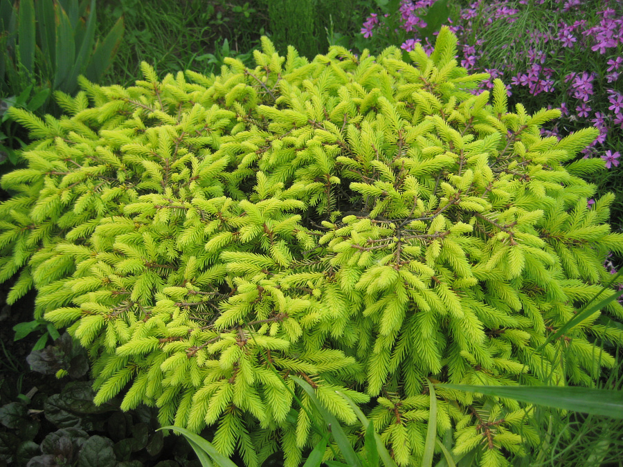 - хорошее освещение. Деревце морозостойкое. Хорошо смотрится крупномер Вермонт Голд в альпинариях, может служить как растение почвопокровное.