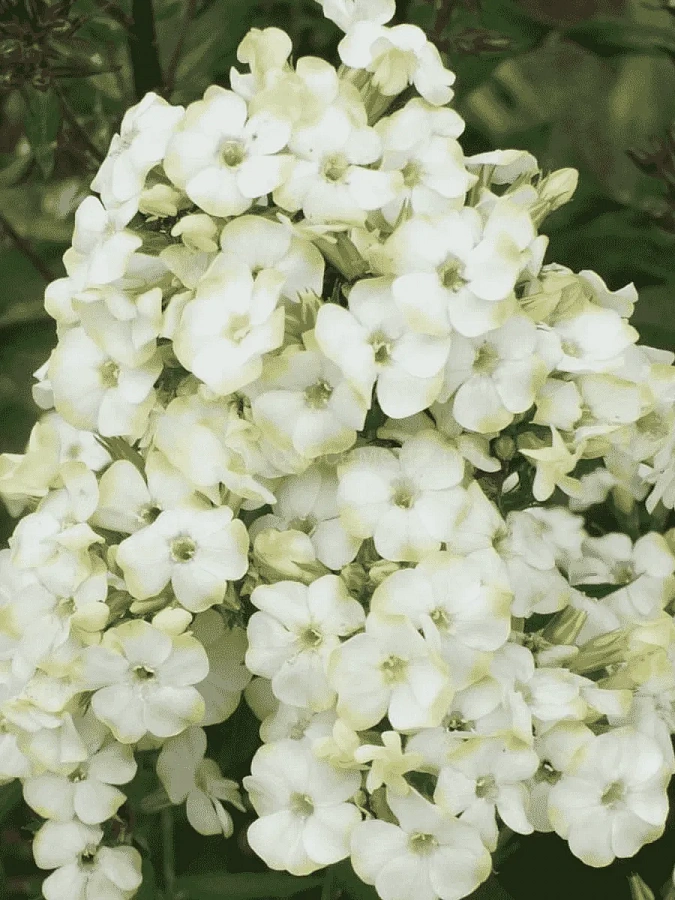 Флокс метельчатый джейд - это изысканное растение с нежными белыми цветками, украшенными бледно-зелеными кончиками лепестков. Его стебель прочный и прямой, достигает высоты до 50 см, что делает его идеальным для создания красивых цветочных композиций в саду. Листья флокса имеют интересную форму, что добавляет изюминку в общий вид растения.