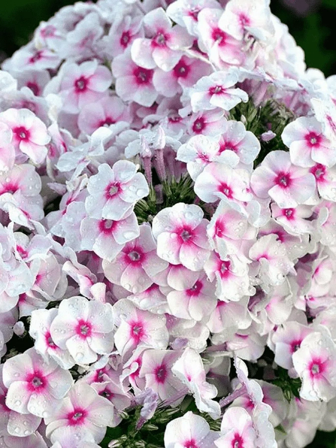 - приятный сладковатый аромат. Цветки флокса метельчатого Граф Цеппелин очень нарядные, белого-розового цвета с яркой малиновой звездочкой по центру. Семена могут проращиваться для получения рассады. Этот сорт обладает отличной зимостойкостью, практически не привлекает внимание вредителей, редко болеет.