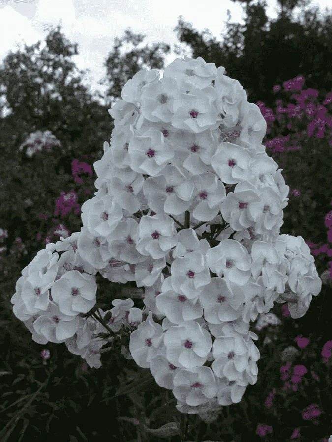 Флокс метельчатый "Молочное суфле" - это изысканное растение, которое поразит вас своей нежностью и красотой. Его стебель прочный и прямой, достигает высоты до 140 см, что делает его заметным акцентом в вашем саду. Листья флокса метельчатого имеют интересную форму и насыщенный зеленый цвет, создавая гармоничный контраст с белыми цветками с розовыми глазками.