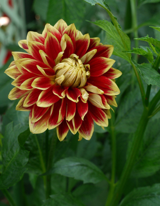 Окраска цветка : Контрастный, идеальной формы цветок с широкими ярко-красными лепестками с узкой желтой каймой