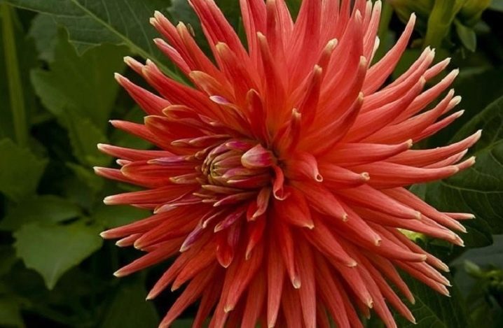 Георгина кактусовая "Сити ов Роттердам" - это великолепное растение с красивыми крупными цветками, достигающими 13 см в диаметре. Ее стебель прочный и прямой, а высота растения может достигать до 60 см. Листья георгины имеют интересную форму и придают ей особый шарм.
