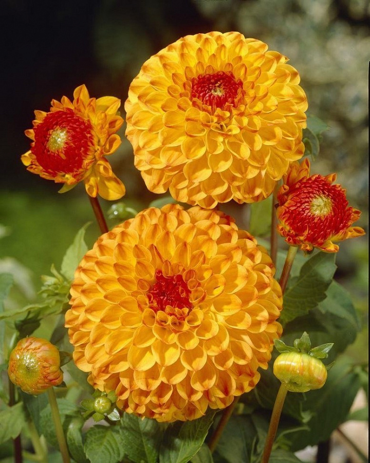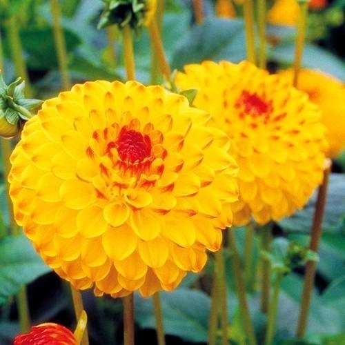Луковицы георгины махровой Санни Бой (Sunny Boy, DÁHLIA VARIABILIS) дают жизнь прекрасному солнечному цветку, который привлекает внимание насыщенным желто-оранжевым окрасом. В распустившемся состоянии диаметр бутона доходит до 12 сантиметров. Большое количество лепестков формирует плотный шар, напоминающий солнце. Высота куста достигает 100 сантиметров. Стебли плотные, но может потребоваться опора. Непрерывное цветение продолжается с июня по октябрь. Останавливает процесс стойкое осеннее похолодание. Растение высаживают обязательно в солнечном, безветренном месте. Растет в саду, на террасе, балконе.