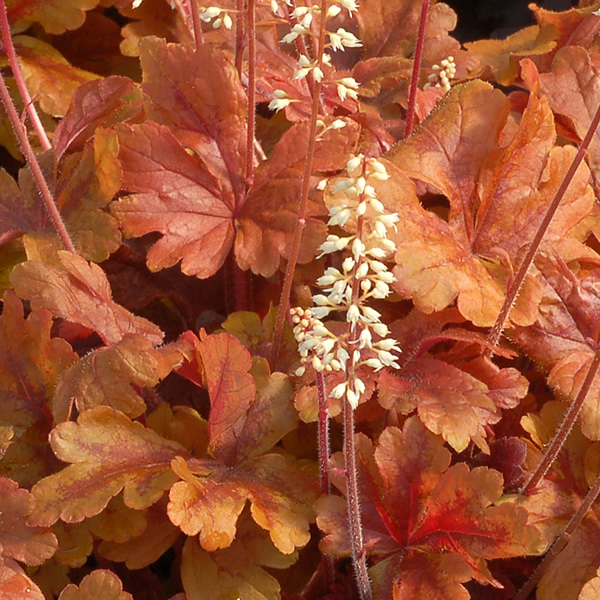 Рассада гейхереллы Баттеред Рам (Buttered rum) наполнит сад удивительными резными листьями, окрашенными оранжевыми и медными тонами, которые осенью меняются на бордово-багряные. Летом кусты особенно эффектно выглядят благодаря расцветающим белым цветочкам. Этот компактный сорт применяется для украшения клумб, альпийских горок и миксбордеров. Даже начинающие садоводы без труда справятся с уходом за рассадой гейхереллы Баттеред Рам (Buttered rum), растение неприхотливо к уходу и легко приживаются на почве любого типа. Для омоложения, кусты нужно раз в 3–4 года пересаживать.