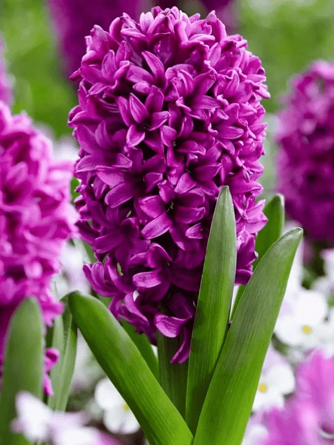 Луковицы гиацинта Miss saigon высаживать необходимо в период от начала сентября до середины ноября. При правильном уходе растение порадует вас не только своим цветом, но и высотой, которая в среднем достигает около 30 см. Наиболее подходящая почва для луковиц гиацинта Miss saigon — рыхлая, плодородная, хорошо дренированная. Период цветения — начало апреля — май. Цветочки мелкие, собираются в плотные соцветия яркого сиреневого цвета. Высота всего цветоноса примерно 35 см. При этом длина соцветия — 20 см. Продолжительность цветения одного цветка доходит до 20 дней.