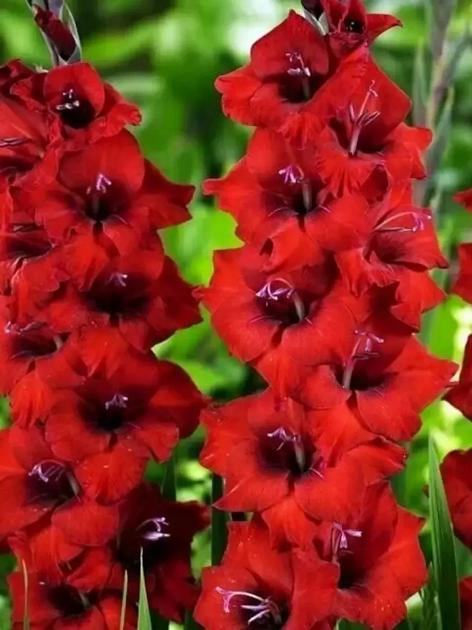 Луковицы гладиолуса гибридного Азурро (Azurro), новинки селекции, сегодня доступны всем садоводам. Растение отличается высокорослостью, до 110 сантиметров, прочным прямостоячим стеблем и тонкими длинными ярко-зелеными листьями. Цветы по 8-10 штук собраны в соцветие «кисть», очень крупные, до 20 сантиметров в диаметре. Лепестки окрашены в насыщенно-красные тона, с плавным переходом от яркого до темного. Слегка волнистые края придают цветку изысканности и шарма. Сорт Azurro – украшение коллекции любителей гладиолусов. Он прекрасно смотрится в букетах и композициях, символизирующих любовь и страсть.