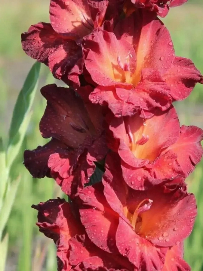 Луковицы гладиолуса гибридного Brown Sugar, в переводе Коричневый Сахар, порадуют любителей не только гигантскими размерами, но и красивыми цветами. Это один из лучших сортов для срезки. Крепкие цветоносы достигают в высоту 150 сантиметров. Каждое растение хорошо облиствено, что позволяет при срезке оставить на кусте не менее 4 листьев для формирования полноценных молодых луковиц. Цветы насыщенно-красного, с нотками коричневого цвета, собраны в длинные плотные кистевидные соцветия. Цветет активно и долго, что делает растение популярным у флористов и ландшафтных дизайнеров. Букеты из гладиолусов сорта Браун Шугар уместны в особо торжественных случаях и церемониях.