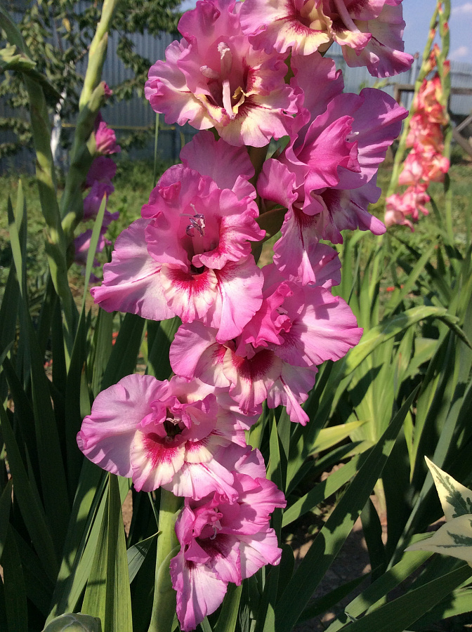 Луковицы гладиолуса гибридного Greyhound высаживаются в прогретую увлажненную почву. Рекомендуемая глубина лунок 10-15 см, а расстояние между ними – до 30 см. Сорт неприхотлив и популярен среди цветоводов. Высота растения варьируется от 50 до 150 см. С конца июня – начала июля до сентября вершину гладиолуса гибридного Greyhound украшает колосовидное соцветие из прекраснейших цветов. Лепестки голубовато-розовые с яркими кораллово-розовыми гофрированными краями и редкими штрихами у основания. Этот сорт отлично смотрится в одиночных посадках, высадках большими группами и в смешанных цветниках.