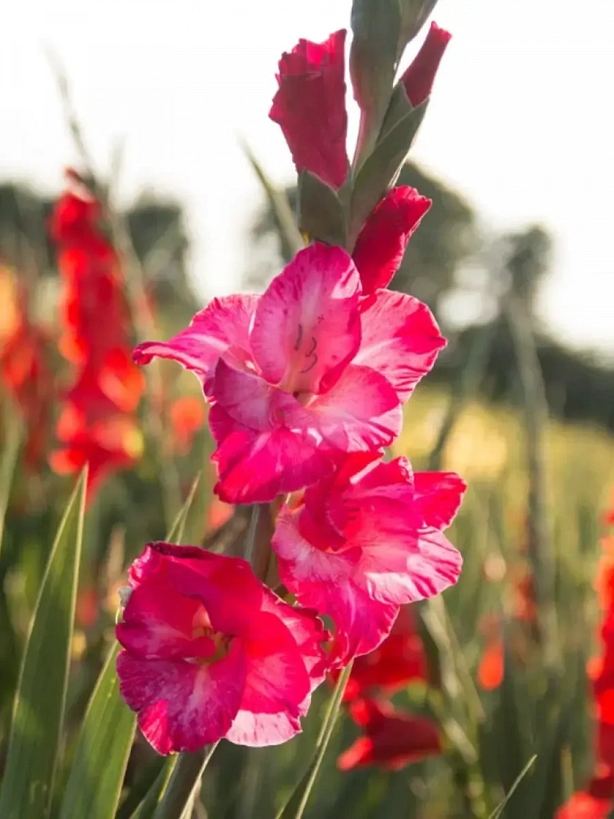 Луковицы гладиолуса гибридного Jo Jo подарят возможность украсить загородный участок высокими (до 110 сантиметров) растениями с эффектными колосовидными соцветиями, состоящими из 15-20 крупных малиновых цветов с белыми штрихами на нижних лепестках. Этот сорт можно выращивать на срезку, а также использовать для украшения садовых объектов. Чтобы добиться максимальной декоративности, необходимо тщательно выбирать место для посадки луковиц гладиолуса гибридного Jo Jo. Оно должно быть хорошо освещено, но скрыто легкой полутенью от жаркого полуденного солнца, а также защищено от сквозного ветра.