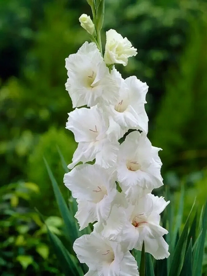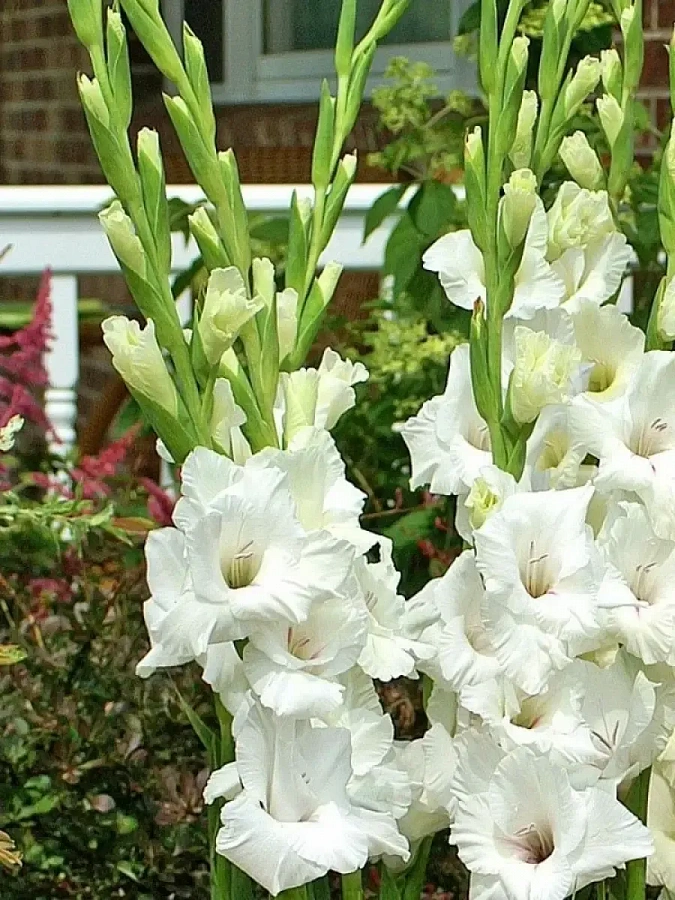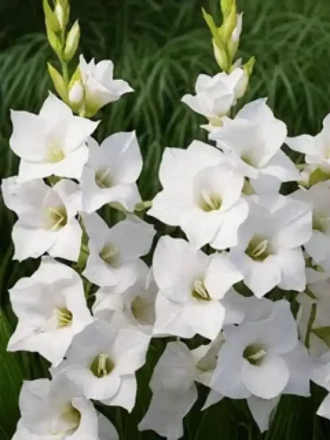 Луковицы гладиолуса гибридного White Prosperity порадуют любителей нежных декоративных растений – летом на длинных цветоносах распускаются белоснежные цветы, собранные в колосовидные соцветия. Этот сорт идеально подходит для составления роскошных букетов, а также оформления садовых объектов: скамеек, дорожек, ограждений, беседок. Луковицы гладиолуса гибридного White Prosperity нуждаются в регулярных поливах, но не переносят скопления застойной влаги. Для посадки рекомендовано выбирать участки с хорошим освещением и легкой полутенью. Высота взрослого растения достигает 110 сантиметров.