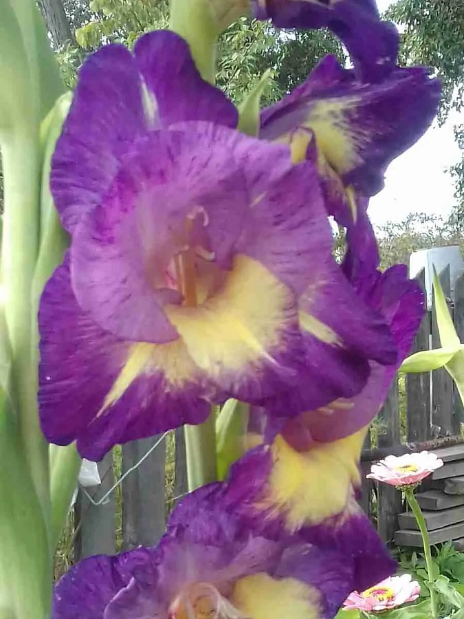 Гладиолус крупноцветковый "Динамит" - это настоящий взрыв красок и энергии в вашем саду! Стебли этого растения достигают высоты до 110 см, украшенные крупными цветками пурпурного цвета с ярким жёлтым пятном. Листья гладиолуса имеют форму меча, что придает растению особый шарм и изящество.