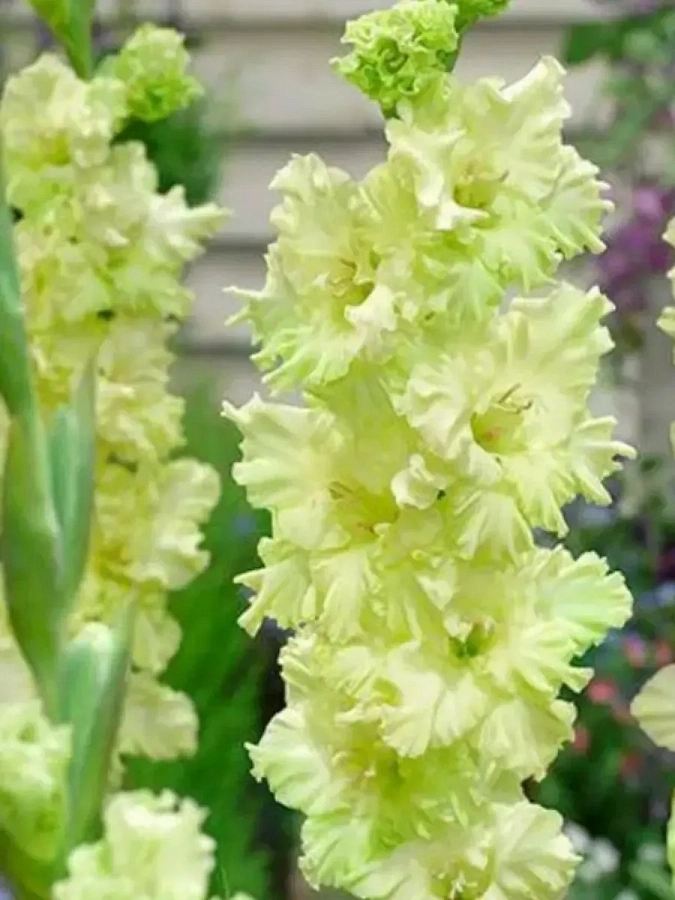 Гладиолус "Огни городов" Тула - это великолепное растение с бело-зелеными цветками, которые будто олицетворяют огни ночных городов. Этот гладиолус поражает своей красотой и изяществом, привлекая внимание своими яркими оттенками. Сорт Тула отличается высотой до 100 см и размером цветка 10 см, что делает его заметным акцентом в саду или на клумбе.