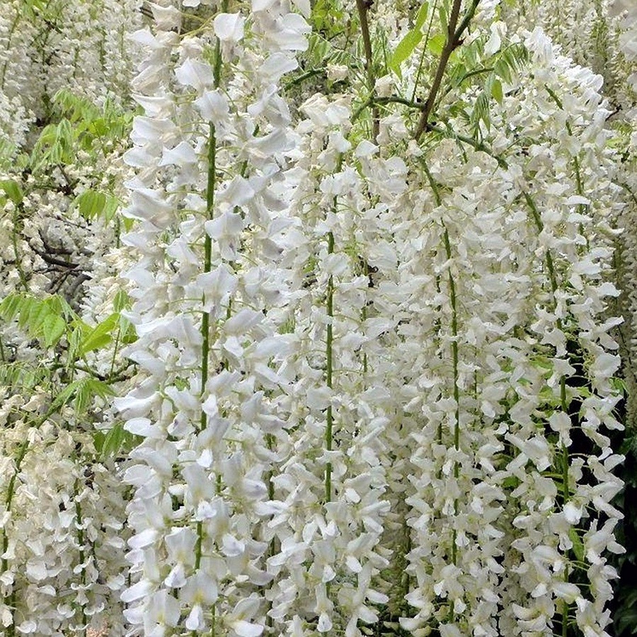 Саженцы глицинии китайской Alba пользуются огромной популярностью у садоводов и дизайнеров ландшафта. Взрослое деревце ежегодно вырастает на 1-2 метра, в конечном результате достигая 6 метров. В мае на повислых ветвях распускаются белоснежные цветы, которые повторно появляются в конце августа. Этот сорт отличается высокой декоративностью.