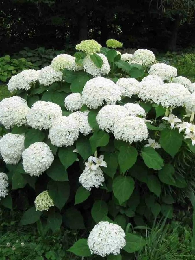 Саженцы гортензии древовидной Annabelle (Анабель) достигают 120 см. Листья насыщенного зеленого цвета могут вырастать до 30 сантиметров. Декоративный крупномер продолжительно цветет, ярко-белые цветы собираются в соцветия большого диаметра. Растение требует качественного ухода, необходимы