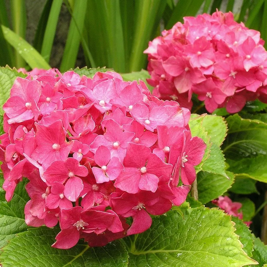 Гортензия крупнолистовая дойчланд - это великолепное растение с изысканными темно-розовыми цветками, которые украсят ваш сад во время цветения во 2 и 4 месяцы. Ее темно-зеленая листва создает прекрасный контраст и сохраняет свою красоту как весной, так и осенью. Растение достигает высоты до 120 см и имеет диаметр от 15 до 30 см.