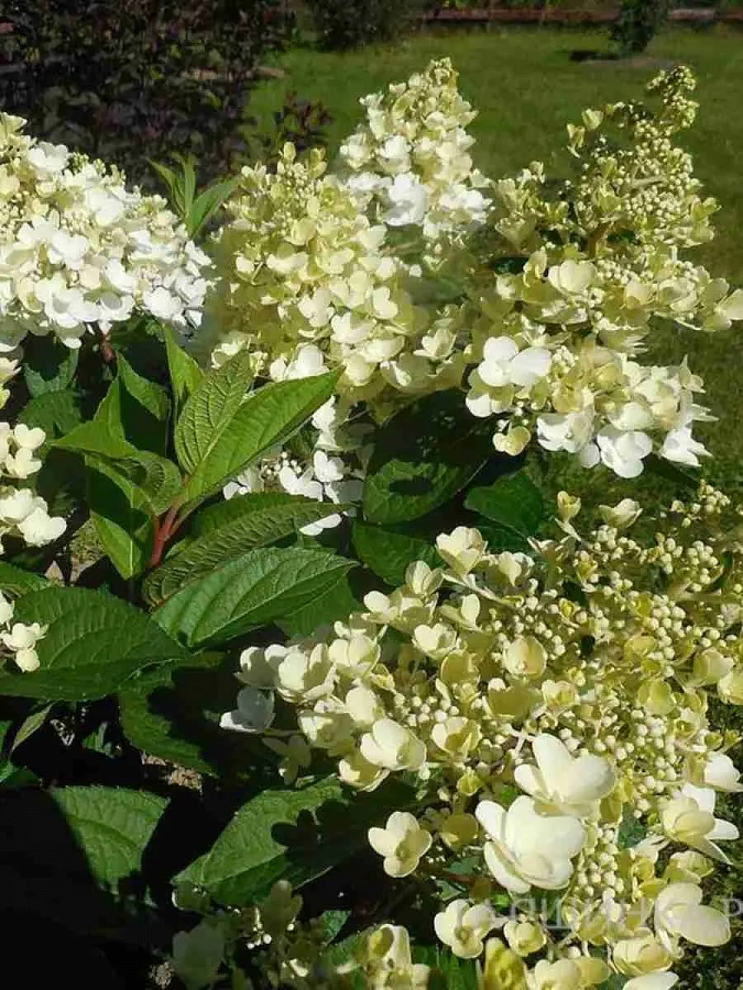 - Высокий кустарник относительно других сортов гортензий, до 300 см. Саженцы хорошо примутся на почве, богатой гумусом кислой или нейтральной, в полутени. Цветы гортензии метельчатой October Pride (Октобе Прайд) собраны в рыхлые конические соцветия кремово-белого цвета. Листья зеленые с грубой поверхностью. Стебли прямые и прочные, не сгибаются под тяжестью пышных метелок.