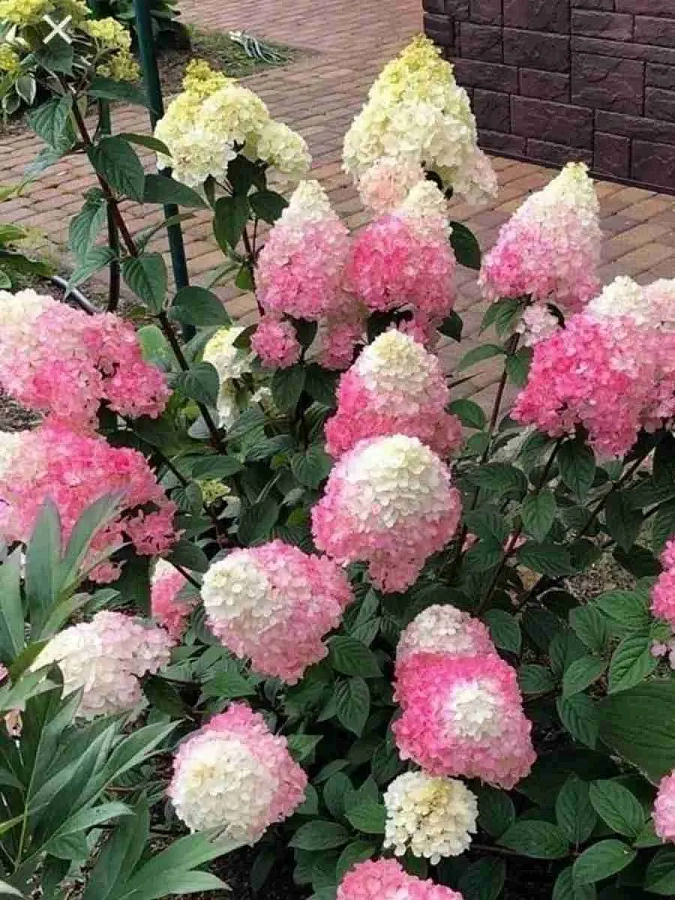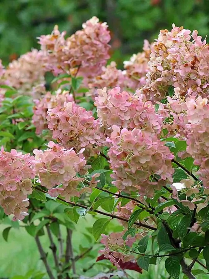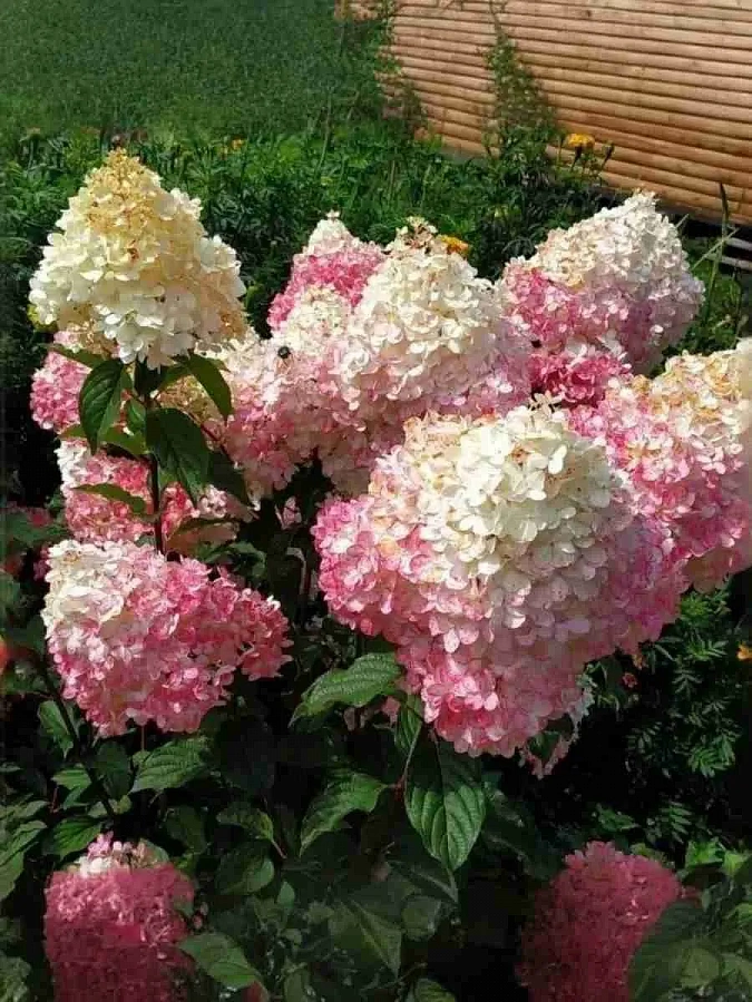 - делением куста. Цвести гортензия начинает в середине июня – соцветия-метелки достигают длины в 25 сантиметров. В начале цветения цветы белые, позднее лепестки приобретают темно-розовый оттенок. Крупномер необходимо высаживать в плодородную, хорошо увлажненную почву. Выбор места не имеет особого значения – гортензия прекрасно цветет как под ярким солнцем, так и в тени.