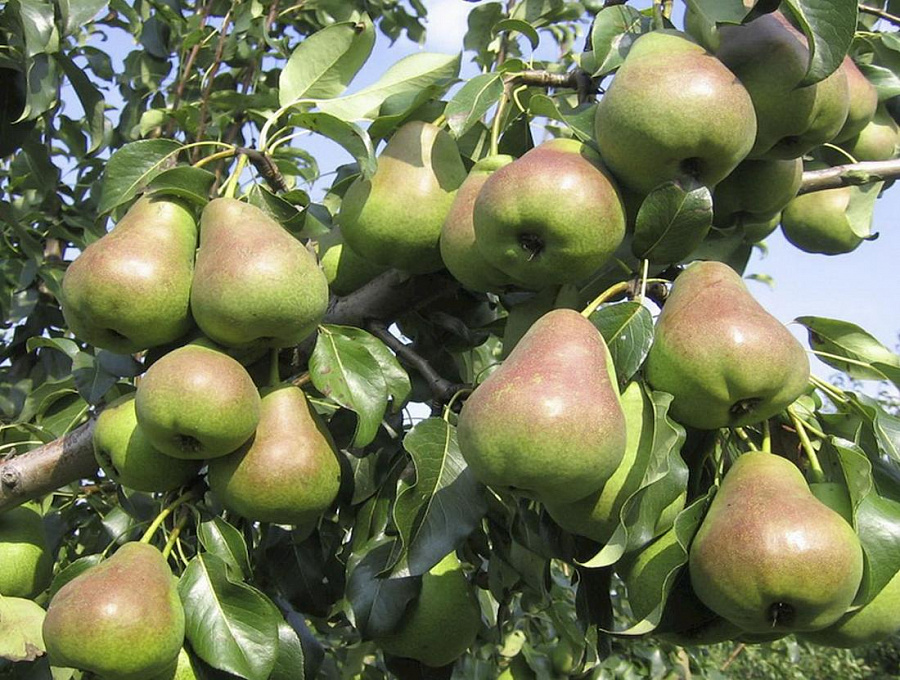 У груши крупные вытянутые плоды, около 300 г весит одна штука. Кожура у груш плотная с восковым налетом и держится на ветке благодаря крепкой плодоножке. Цвет зеленый с легким румянцем.