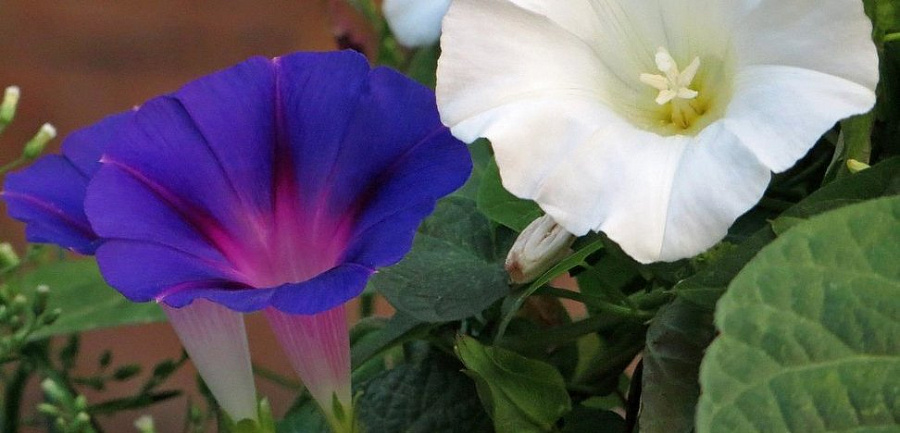 Ипомея "Танец теней" - это удивительное растение с темно-фиолетовыми и белыми цветками, которое поражает своей красотой и изяществом. Его стебель достигает диаметра до 8-10 см, а время цветения приходится на март, апрель, июнь и июль. Листья имеют форму сердца и создают неповторимый образ этого растения.