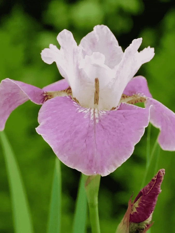 Ирис сибирский "Дэнс Балерина Дэнс" - это настоящая танцующая красавица среди садовых растений. Ее стебель грациозно поднимается до 60 см, а диаметр цветка достигает 40 см, словно вихрь танцует на лепестках. Цветок бело-сиреневой окраски напоминает пышное платье балерины, создавая неповторимую атмосферу в саду.