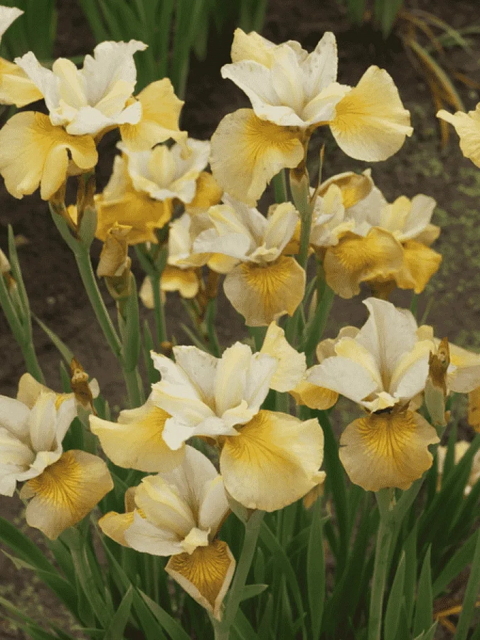 Ирис сибирский уайт эмбер - это великолепное растение, которое поразит вас своей красотой и изяществом. Его стебель тонкий и прочный, достигает высоты до 65 см, а цветки с эффектным переливом от бронзового до желтого с лавандовым центром радуют глаз в мае и июне. Листья зеленые, создают яркий контраст с яркими цветами.