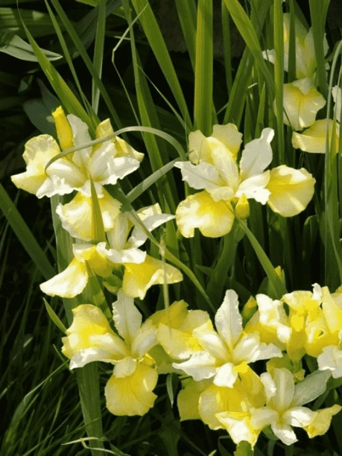 Саженцы сибирского ириса Йеллоу Тейл (Iris sibirica Yellow Tail) привлекательны для цветоводов неприхотливостью в выращивании. Все, что им необходимо, – умеренный полив, полутень, периодическое внесение удобрений, хотя можно обойтись и без них. Линейные темно-зеленые листья сохраняют декоративность до самых заморозков, оставаясь в форме компактного кустика. Цветок крупный, до 14 см в диаметре. Первые бутоны распускаются в мае. Цветение длится и в июне. Стандарты белые со светло-желтыми полосами. Фолы лимонные, более насыщенные в центре и светлее по краям. Высота цветоносов около 75 см.
