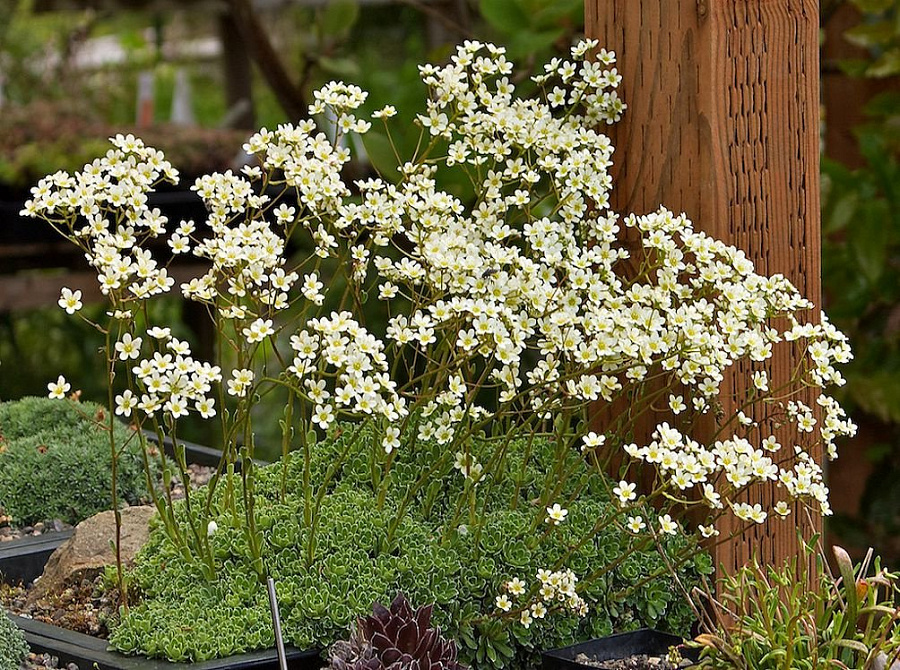 Рассаду камнеломки метельчатой лучше всего использовать для создания альпинариев и рокариев. Именно тогда, среди камней, растение проявит всю свою декоративность. Почва для семян камнеломки метельчатой подойдет любая. Но лучше, чтобы она была удобрена гумусом и кальцием. Также перед высадкой грунт нужно дренировать. В высоту она поднимается не более чем на восемь сантиметров. Темно-зеленые листочки собраны в розетку. По краям они украшены зубчатыми выступами белого цвета. Цвести взрослая рассада камнеломки метельчатой начинает в июне. Цветы небольшие всего 5 миллиметров в диаметре. Они окрашены в бледно-желтый или бледно-розовый цвет.
