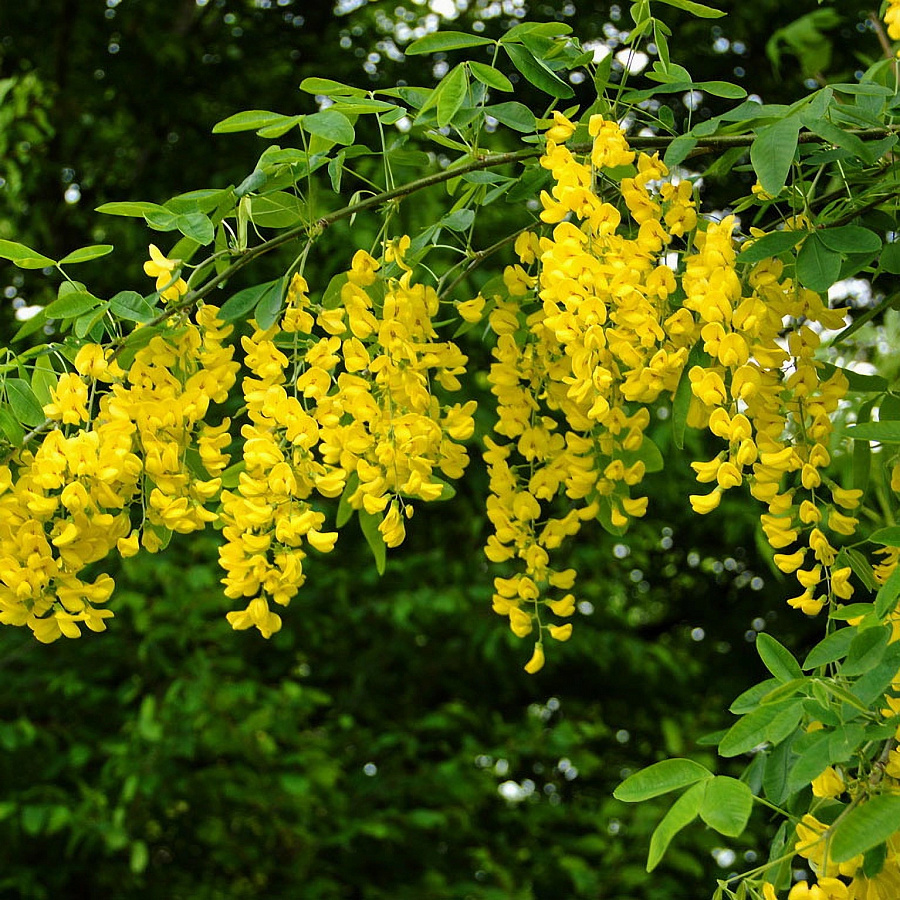 Саженцы караганы древовидной или по-другому акации желтой подарят саду высокие кустарники или даже деревца, которые могут вырастать до 5-6 м. Ее листочки эллиптической продолговатой формы соединены по 4-7 штук. Цветки появляются в конце мая или июне, имеют ярко-желтый окрас, чаще одиночные, но могут быть и соцветиями от 2 до 5 штук.