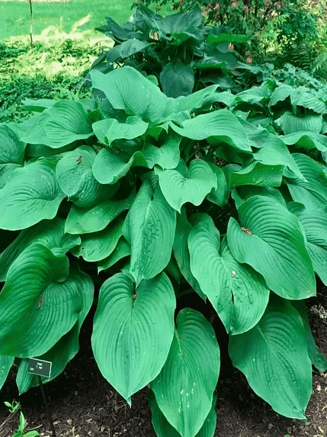 - Очень крупные, ярко-зеленые, плотные листья сердцевидной формы, немного жатые у сформировавшихся взрослых растений.