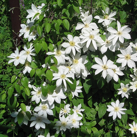 Саженцы клематиса гибридного Мария Байселот (Marie Boisselot) лучше растут на плодородных, суглинистых или супесчаных почвах, с нейтральной реакцией среды. Предпочитают освещенные места, или полутень. Цветение клематиса гибридного Мария Байселот (Marie Boisselot) приходится на июнь-июль, повторно зацветает в августе-сентябре. Цветки диаметром 15-20 см, снежно-белые, на лиане располагаются одиночно. При максимальной длине побегов в 200-250 см, клематис гибридный Мария Байселот (Marie Boisselot) за сезон может обвить беседку, арку или любую другую садовую конструкцию.