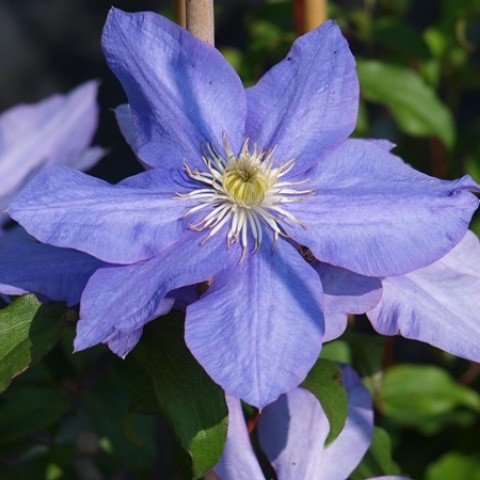 Этот сорт цветет в начале и середине сезона, радуя глаз голубыми, полумахровыми цветками. Клематис любит солнечные места, но также хорошо растет в полутени, что делает его универсальным для различных условий выращивания. Растение требует дренированных богатых почв и регулярного полива, особенно в период цветения.
