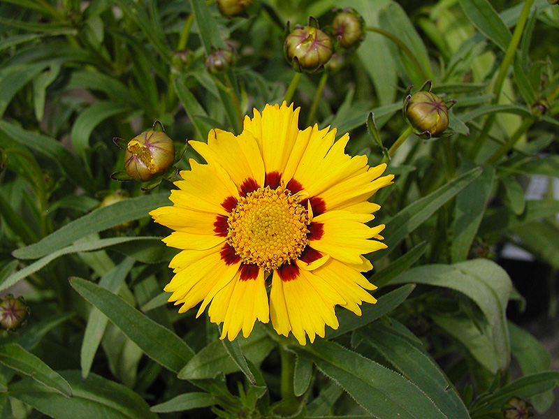 Семена кореопсиса крупноцветкового «Домино» (Coreopsis grandiflora) высевают на рассаду в марте – апреле. При температуре 18-20 градусов первые всходы можно наблюдать через две недели. Высадку в открытую почву проводят в первой половине июня. Кореопсис крупноцветковый «Домино» используют для оформления смешанных цветников с другими многолетниками или для украшения сада цветами в вазонах. Растение компактное. В высоту обычно не превышает 45 см. Листочки латентные, насыщенно-зеленого оттенка. Цветочки распускаются в июле. Они среднего размера (диаметром до 5 см), окрашены в ярко-желтый цвет и имеют коричневую каемку в серединке.