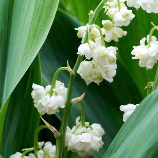 Рассада ландышей "Пролификанс" (Prolificans) Листья ланцевидные или обратнояйцевидные с продольным жилкованием. Шириной - 4 - 5 см., длиной - 13 - 15 см. Сохраняются они до августа, потом полегают. Время цветения - май - июнь. Цветы белые, махровые. Они густо усеивают цветонос. На одном может быть до 15 штук. Запах цветов несильно выраженный, тонкий. Высаживают рассаду ландышей "Пролификанс" на частично или полностью затененные участки. Растение способно расти и на солнце. Почва подходит плодородная, влажная, без застоя влаги.
