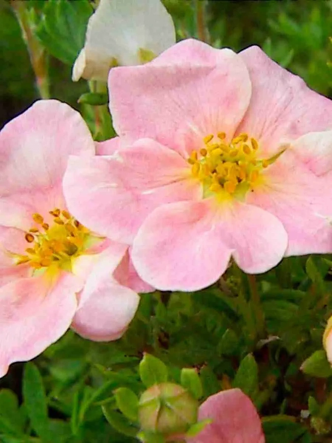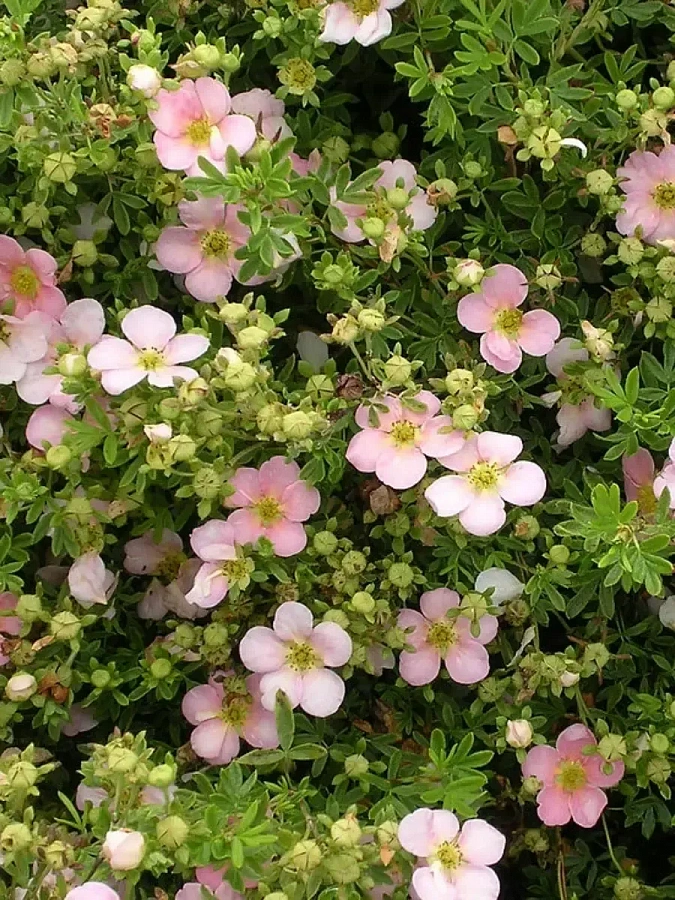 Лапчатка кустарниковая Pink Whisper - это изысканное растение, которое поразит вас своей нежной красотой. Ее ствол прочный и устойчивый, а размеры достигают до 60 см в высоту и 90 см в диаметре. Листья этого растения имеют светло-зеленую окраску, создавая яркий контраст с бледно-розовыми цветками, расцветающими в июне, июле и августе.