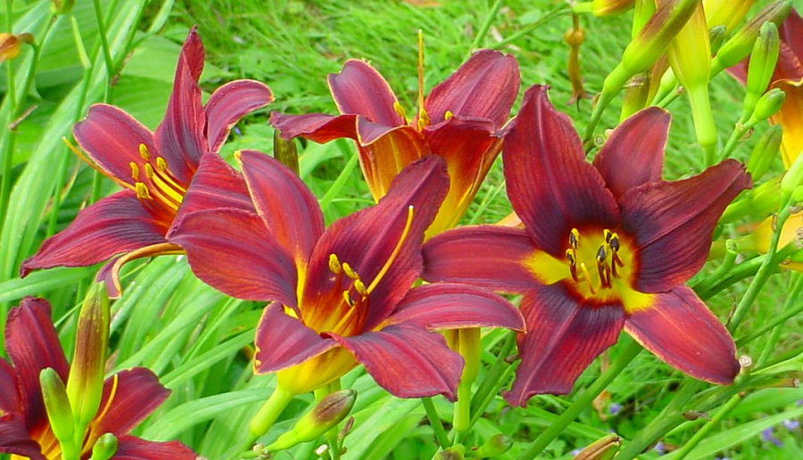 Лилейник Блэк Принц (Black Prince) высокорослый, обильно цветущий гибрид. В конце июня на длинных цветоносах появляются крупные, бархатистые темно-бордовые цветы с желтым горлом. Высота куста достигает 80 см. Возможно повторное цветение. Предпочитает легкие, нейтральные или слабокислые почвы. Этот сорт лилейника прекрасно подойдет для групповых и одиночных посадок. В зимний период не требует укрытия.
