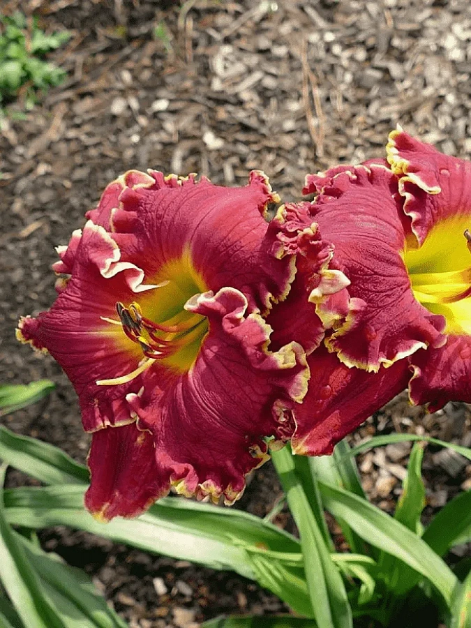 - вишнево-пурпурными бутонами с белой махровой каймой и желтым горлышком. Растение прекрасно смотрится в клумбах с другими цветами более сдержанных расцветок, например, нежно-желтыми или белыми. Обладает выраженным ароматом, поэтому редко используется в букетных композициях на подарок или украшение помещений. Его семена можно проращивать. Предпочитает солнечные места и обильный полив под корень.