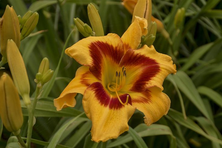 Окраска цветка : Золотисто-желтая с красным глазком, салатовым горлом